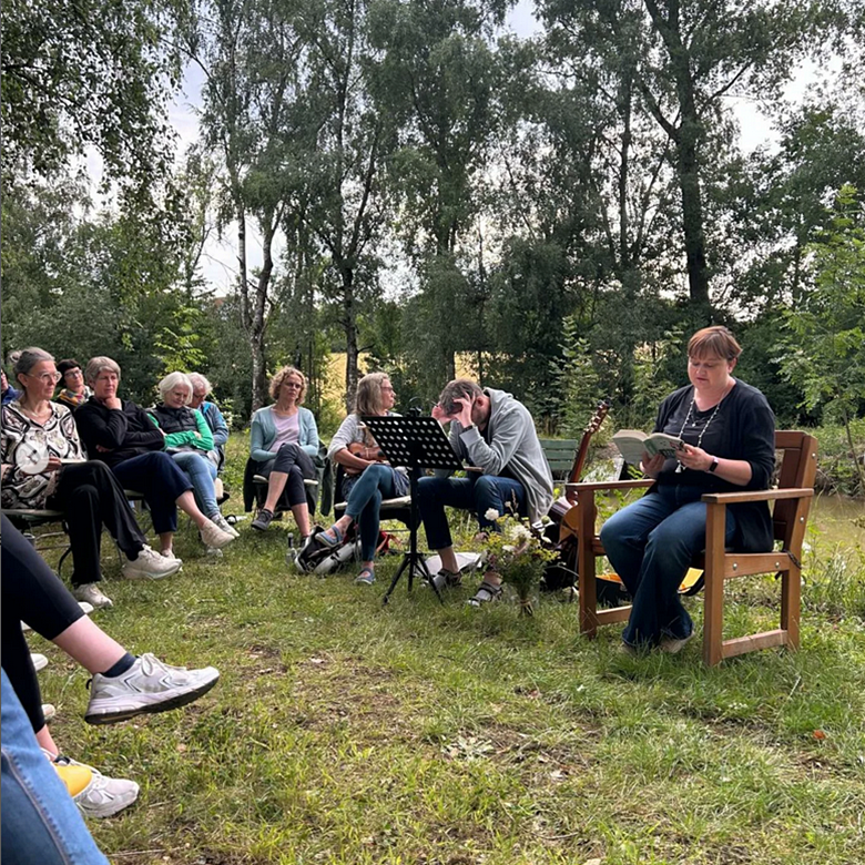 Sylvia Heid liest aus dem Buch Flammen über dem Taubertal. Gerne vorab bestellbar bei uns.